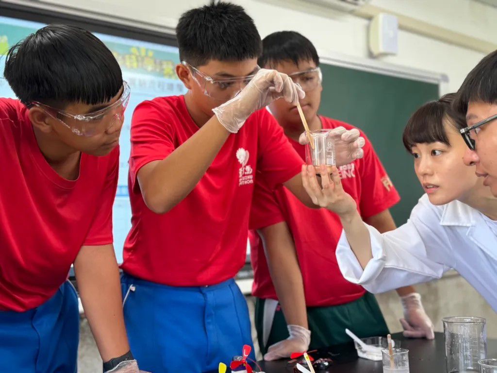 在杜邦志工的熱情引導下,孩子們化身小小偵探進入一場冒險故事中,要根據線索解開「光之魔法師」、「彩虹飲料店」、「魔法泡泡」、「我是變色龍」以及「不能說的秘密」等五個以科學概念為主的關卡活動,透過遊戲及故事設計,不僅體現「R-STEAM」(Reading, Science, Technology, Engineering, Arts, Mathematics),更巧妙的讓孩子們在寓教於樂的情境中學習光的三原色、表面張力、酸鹼測試…等科學原理,探索科學的奧妙。富北國中杜宇華同學表示:「透過實際操作體驗的活動,讓課本知識能夠應用於生活,而不是學習單調的學科內容,學習變得有趣而且有意義。」